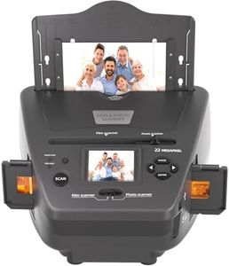 The KODAK SLIDE N SCAN Film and Slide Scanner offers a user-friendly solution for digitizing your old photo memories. Equipped with a high resolution of 22 megapixels, this scanner ensures that your 35mm, 126, and 110 film negatives and slides are converted into high-quality digital photos. The large 5-inch LCD screen with gallery mode is a notable feature, allowing you to preview and edit photos directly on the device, which is convenient for sharing with friends and family or even using it as a digital picture frame.